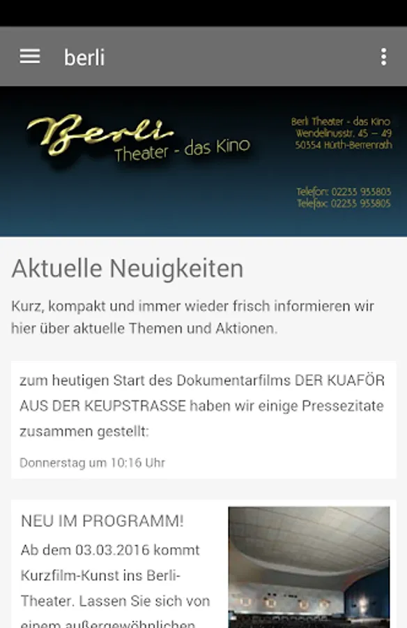 The Berrenrather Light Game Theater, short BERLI Theatre was opened in 1946 and is now run by the fourth generation of the family.