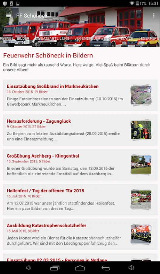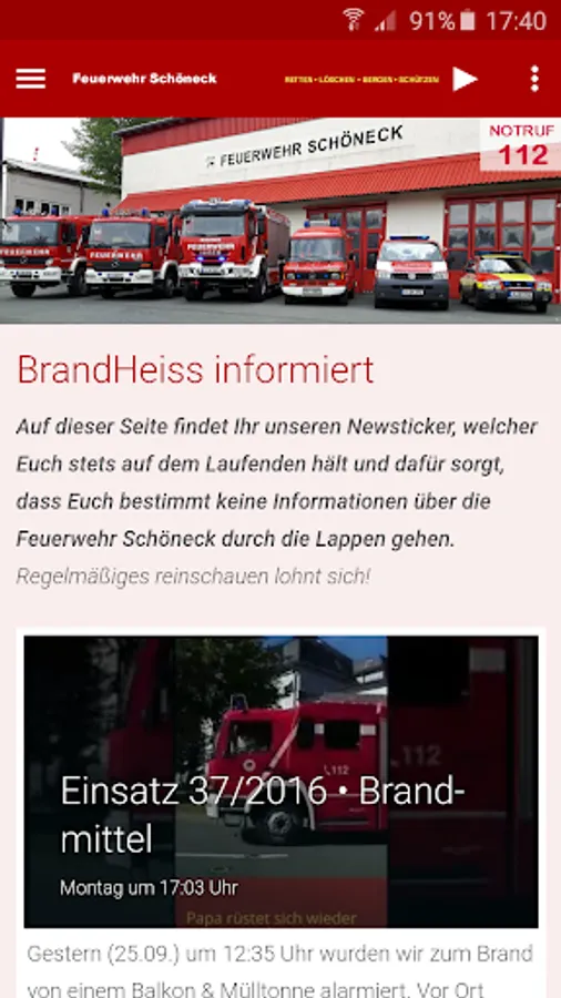 Now there is the information of the volunteer fire department Schoeneck / Vogtland in an official app for Smartphone! All news, tips, photos, events and dates land so directly in your pocket. Whenever there is something new on your phone's ringing. And because a smartphone is just a phone, can be a button equal to make a connection. The app tells the volunteer fire department Schoeneck always know when new information and tips for everyday life are present.