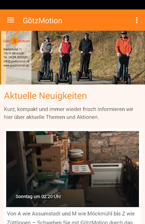 Götz Motion shows you the beauty of Jagsttal with great events. The driving pleasure with a Segway can be compared to anything. This app keeps you up to date.