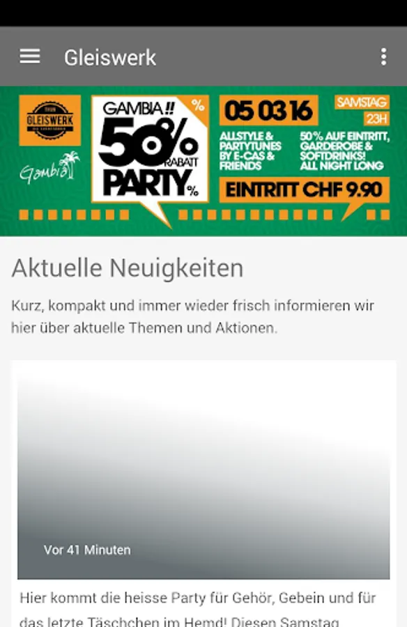RAILWAY STATION the Event Factory stands for diversity and openness. You can expect a lively nightlife and culture in all its facets. Our club offers not only concerts and events from the fields of rock, hip hop, techno, pop, comedy or cabaret - we offer our restaurant also for private rent in a sophisticated frame. We provide everything and are anxious concern of all stripes to operate at the highest level! With this app you will always be up to date on our events - events, party pictures, videos, music, Contacts, tickets.