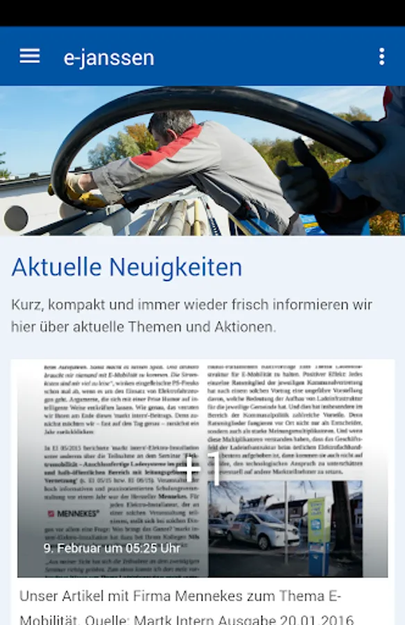 Always and everywhere: electric Janssen now available on your smartphone! With our app always get all the news directly into your pocket. Interesting facts about e -Mobility and other highlights. Contact the back there is also the simple touch of a button. This app is the direct line to us.