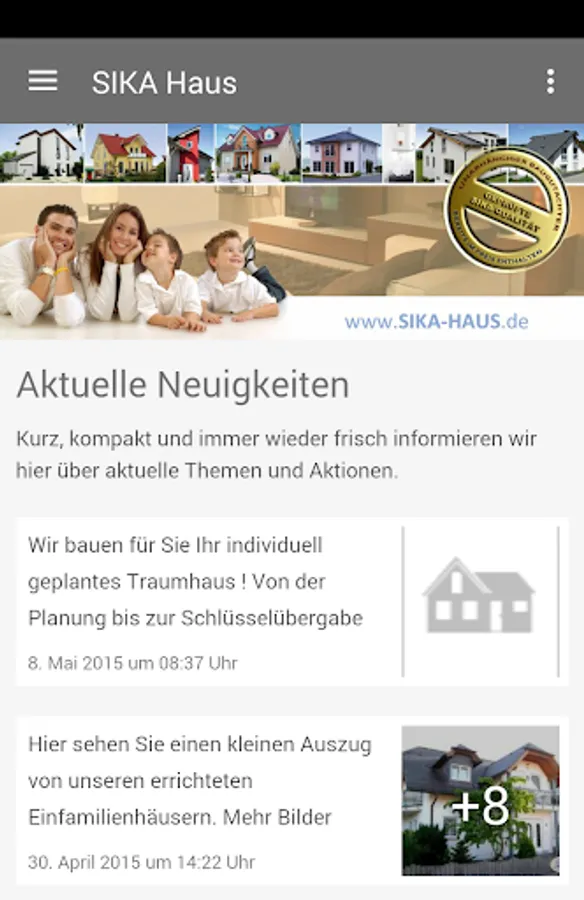 SIKA - the SIKA Massivhaus GmbH now available as an app! - Realize Sika's own dream of the perfect home. We plan and build your massive house according to your individual wishes and ideas! All news, photos, events and dates directly to your smartphone. Our SIKA app now provides a direct line to us.