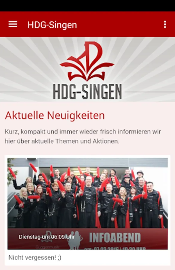 With the app of Guggenmusik HDG Sing are always up to date. We will inform you about current events, the latest photos and report on ongoing actions. No registration or Facebook necessary.