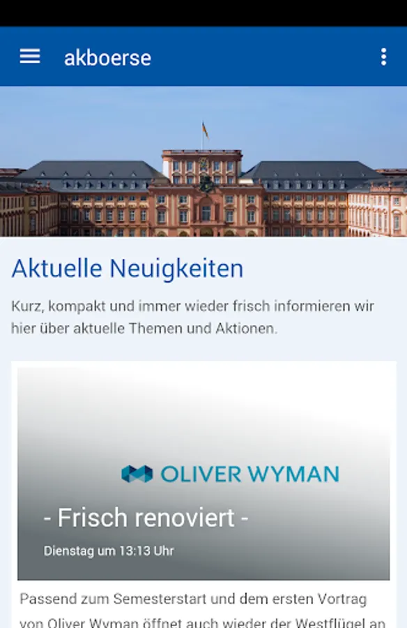 Arbeitskreis Börse - Students of the University of Mannheim eV, the largest student initiative is now available as an app on your smartphone! Everywhere know about news, photos, dates and events communication. Updates instant notification on your phone appears. Contact with us, there are also, all just a click away. This app connects students! Never you were better informed and faster!