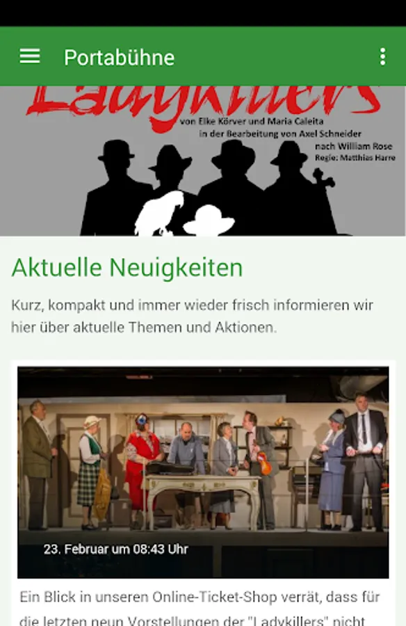 This is the official Porta stage Smartphone App of the Goethe-Freilichtbühne Porta Westfalica. Here you can learn everything about our productions, job interviews, photos, free tickets promotions and much more. So is always up to date. We look forward to welcoming you to our natural stage in Porta Westfalica.