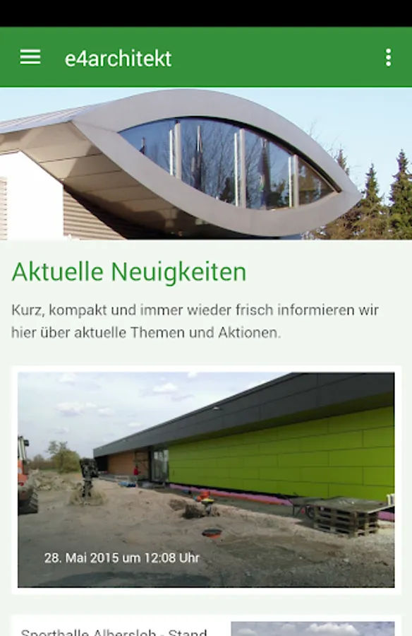 Now there e4architekten as a mobile app! In every place in the world of news, photos, dates and events know about. Once there is something new, it reports the smartphone. This app is the direct line to us.