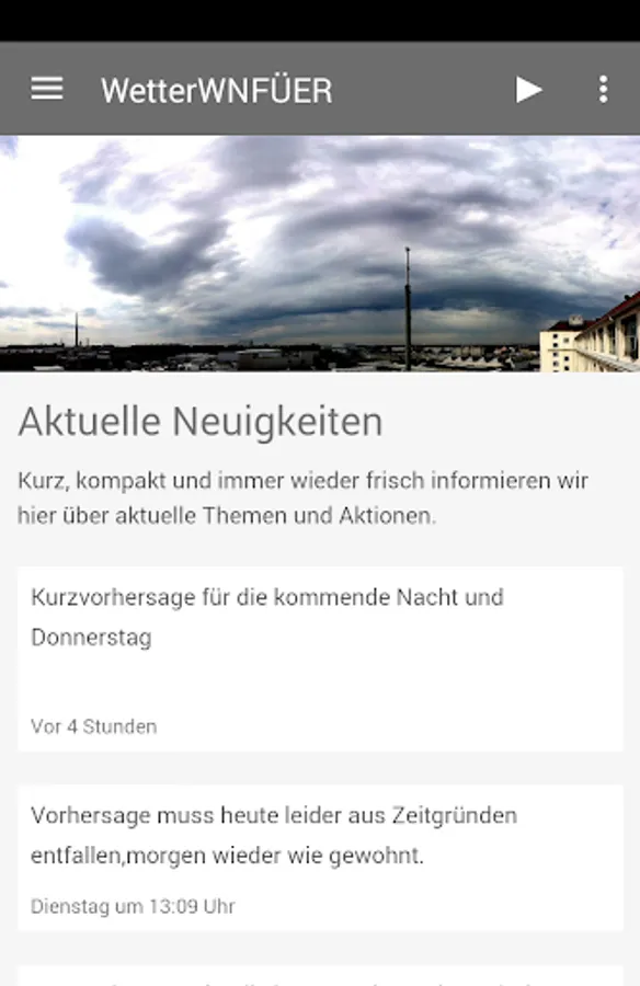 Weather warnings for Nuremberg, Erlangen, Fürth, Schwabach and Roth eg during storms, snow, heavy rain and thunderstorms. The alerts are directly via push on your smartphone angezeigt.So the ye warned in time, no matter where you find yourself. The app does not necessarily require a Facebook account. Also we are in appropriate weather conditions to provide detailed information for you. Warnings are i.a. from the official warning services or of our partners also own warnings. Your weather pictures can you tell us, of course, also via PM on Facebook or via email to let go for publication. We are gradually another feature to the App using Tab Add like Doppler radar, Blizuortung ect.