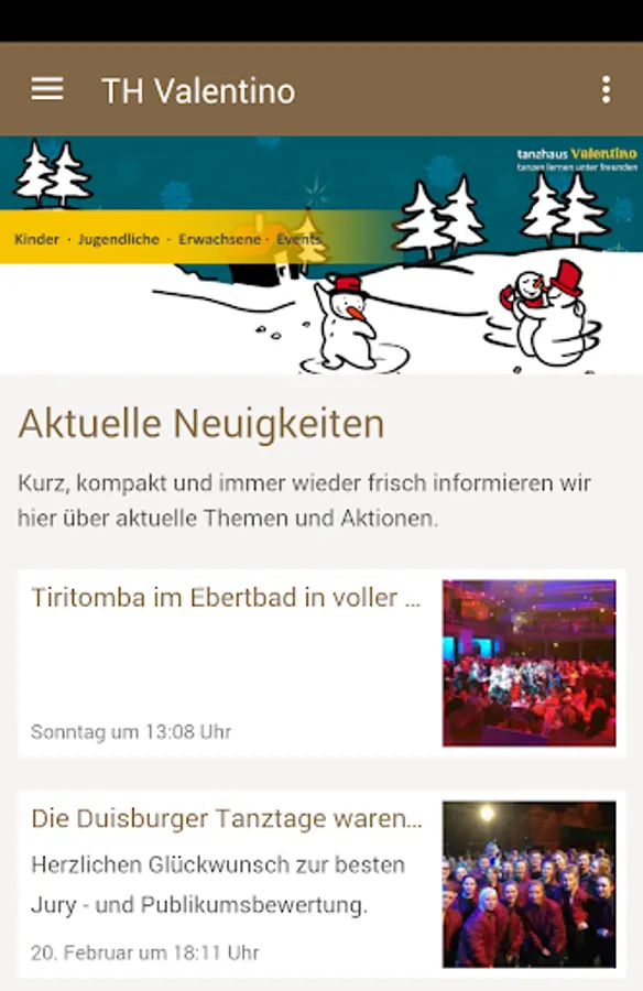 With our app you're about the activities in your ADTV dance house Valentino in Oberhausen always up to date:
