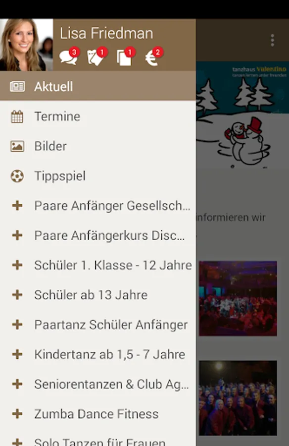 Dance classes, workshops and events, booking appointments for the holiday program listings, news, get pictures, flyers and postponements via push notification - no matter where you are. Everything safely and directly to your Smartphone!