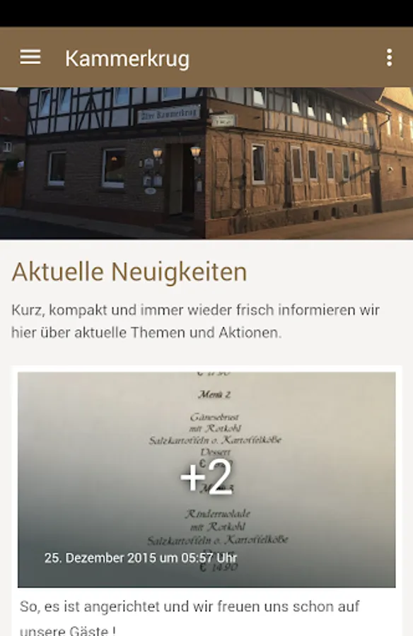 About this app gives you the option to book directly a room or to send inquiries to us. You'll also get a first look at our offer and our dates and events. Please feel free to also use our digital scrapbook and left us greetings. The Kammerkrug is ideally located for bikers and hikers who want to explore the Harz. Our rooms are equipped with shower, toilet, satellite TV and Wi-Fi. An extra bed our room at any time.