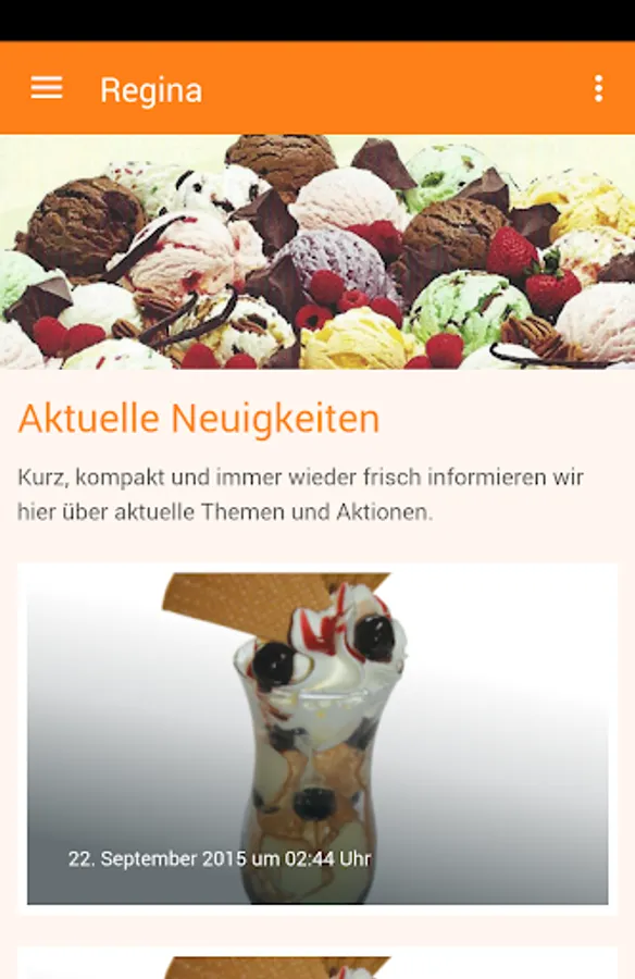 Here is the new smartphone app from Eiscafé- REGINA. In our app you can find our current Ice supply and twitching jerk be kept informed about new Ice variants. If you wish to receive all news via push message and our intercom system invites you to direct contact with us ...