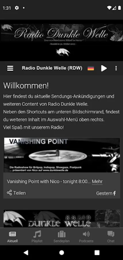 Radio Dunkle Welle is a non-profit project that has been bringing music from the black scene to the black scene via the internet since October 30, 2000. With the move to the RDW app, "Europe's oldest black scene radio online" is now also available directly on smartphones and tablets.