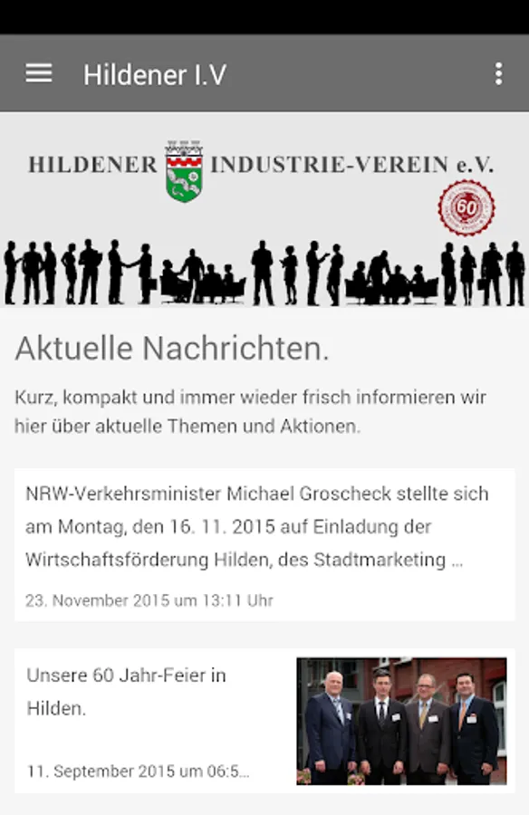 With our app, we continuously inform you about the latest events and appointments. Inform yourself. About the association and the members As a member in Hilden industry-Verein eV You get access to the intranet of the association.