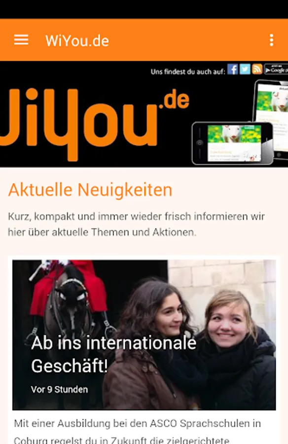 WiYou app is the app for career choice magazine WiYou.de. With newsfeeds, job market, professional image videos, information about careers information exchanges in your region you stay with the WiYou App always up to date on the topics of education, study and career opportunities in Thuringia.