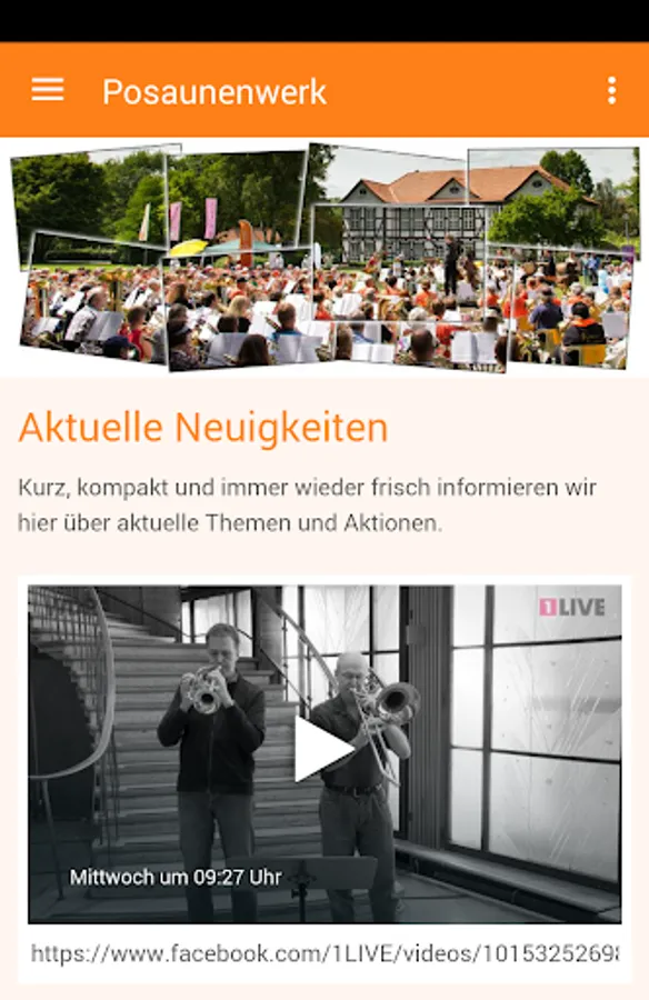 Another element of this network serve information using social media to stay informed to keep in particular our younger assets and to provide a platform to exchange views on news and activities. With the app of the trombone work you're always up to date: what happens - there are new activities, schedule changes or reports from the Posaunenwerk or the individual choirs - no info is lost! Also for fast feedback, the app can be used.