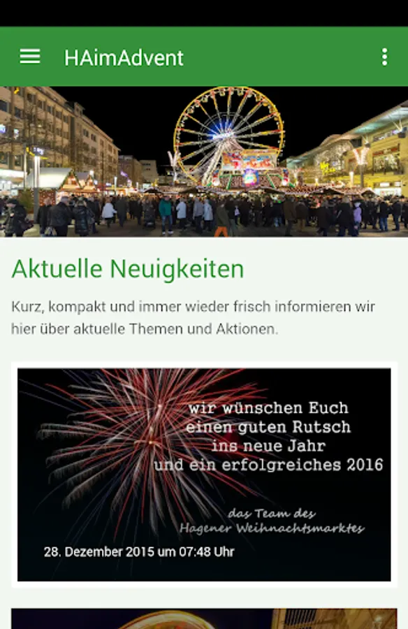 The 48th Hagener Christmas market will open on November 21, its stalls ... With our smartphone app you about special offers or program changes to date ... A timely parking facilities and a location map are mandatory