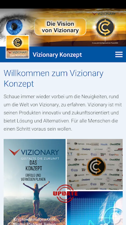 We show you the world of Vizionary and its concept, enter, and be inspired. Profit now and shape your future. Vizionary is an alternative and offers solutions. For those who already think about the future and do not want to miss the connection. Install the app now.