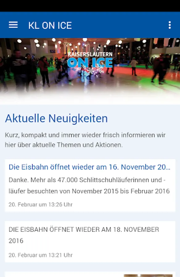 The app for KAISERSLAUTERN ON ICE informs visitors and guests about the current program, dates and daily news. The rink offers sporting entertainment for young and old. Discover, experience and enjoy the winter sports in the city of Kaiserslautern!