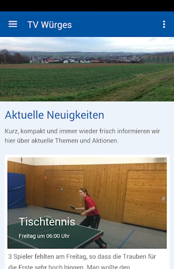 With this app you will not miss any more news about the TV Würges. Weekly reports from the individual departments, such Musikzug, table tennis, football, badminton, volleyball, children's gymnastics, folk dance, and and and