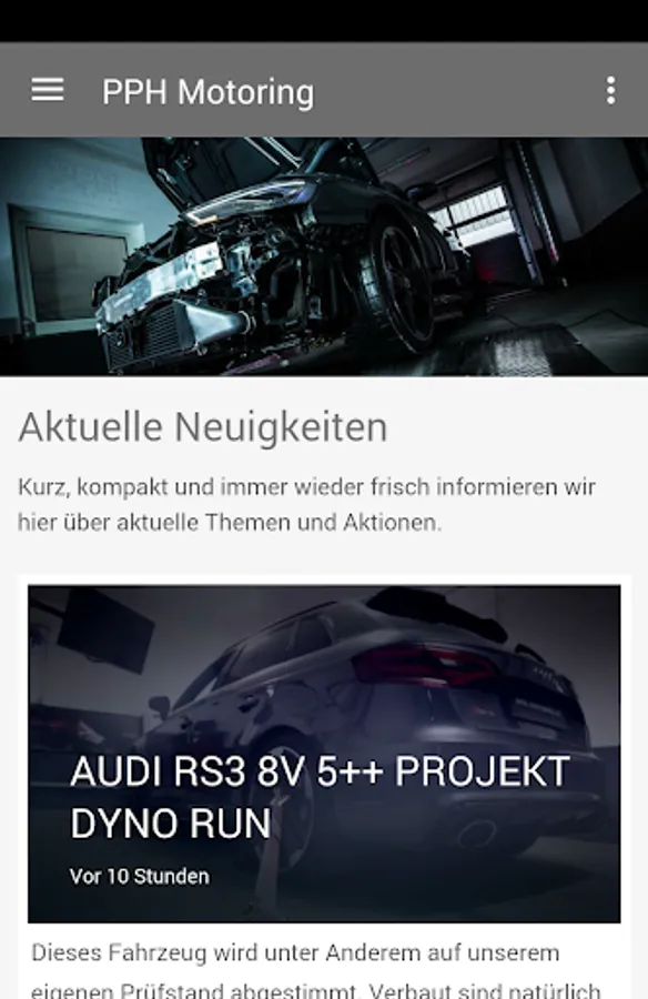 You're a sports fan and motor are interested in professional performance upgrades and conversions? Then the PPH Motoring app is exactly right for you. Here you'll always informed about current project vehicles and their modifications, as well as news in terms of tuning and motorsport lifestyle!
