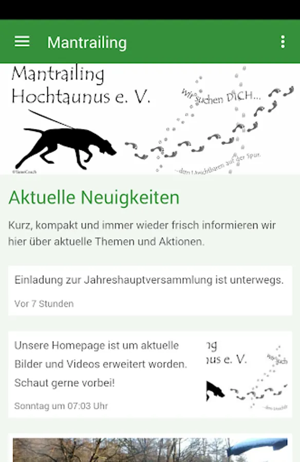 This app it connects people, builds new friendships and informed about the "new" dog sports Mantrailing.