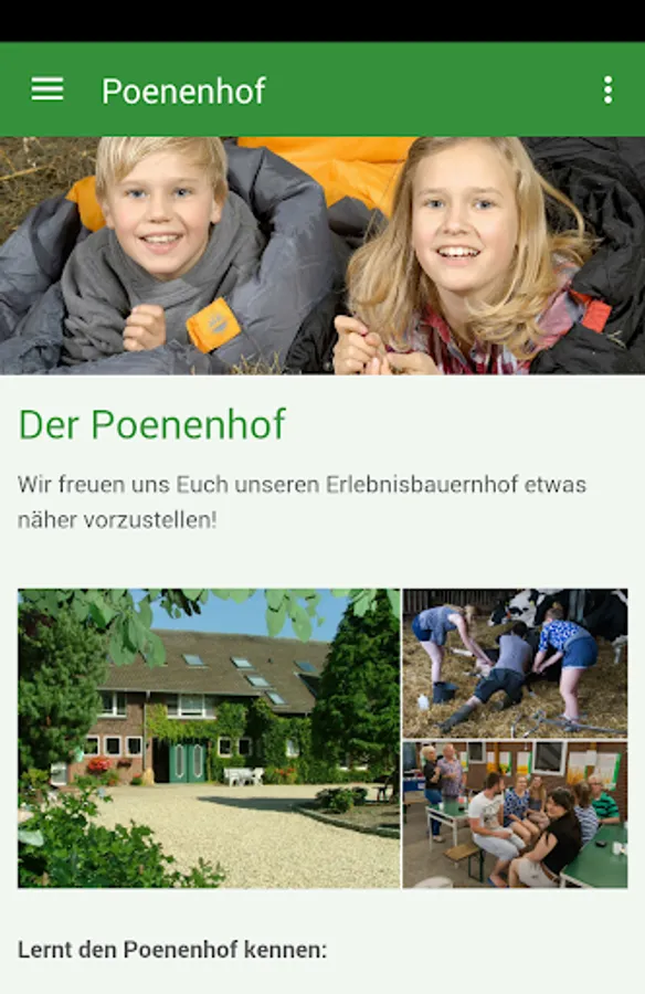 In this app, we want to introduce you to the Poenenhof and its inhabitants and hope to be allowed to you (again) to welcome you as guests.