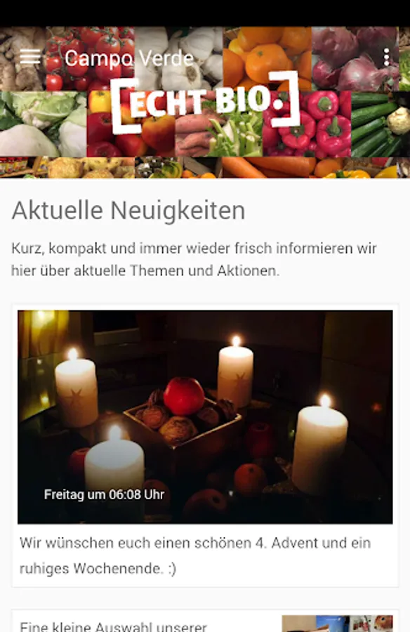 The official Campoverde app will give you the latest offers and news on the subject Organic, Vegetarian and Vegan and creative cooking ideas. Our range of fine wines, fruit juices, drugstore and natural cosmetics offers, fresh fruit and vegetables and sustainable foods of the highest organic quality are available in our shop in Nuthetal in Berlin.