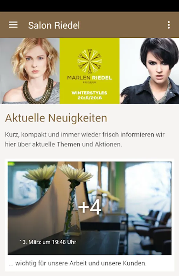 Barber Marlen Riedel - which is primarily for consulting and service around the "perfect haircut" - your personality, your naturalness. Feel with us at home, we are always striving to professionally professionally advise, friendly and accommodating to nurture and thus to make your visit to the hairdresser to a little relaxing time out. With this app, we are you and keep you on the latest trends, styles and care tips to date. News, photos, dates -. Such as opening times change - and information of any kind from reaching customers then even faster. Even personal requests and messages are thus possible over a short distance, the app as a direct link between the customer and the hairdresser Marlen Riedel - your hairdresser at Dresdner south.