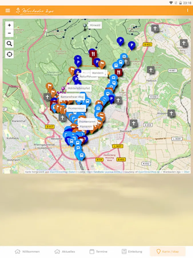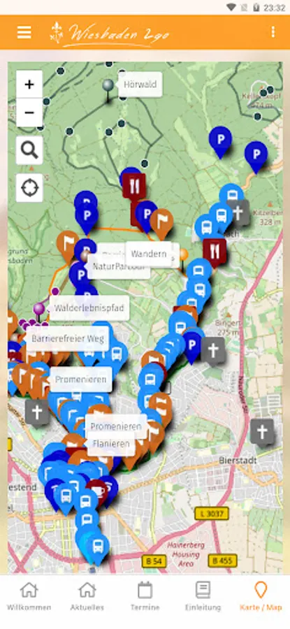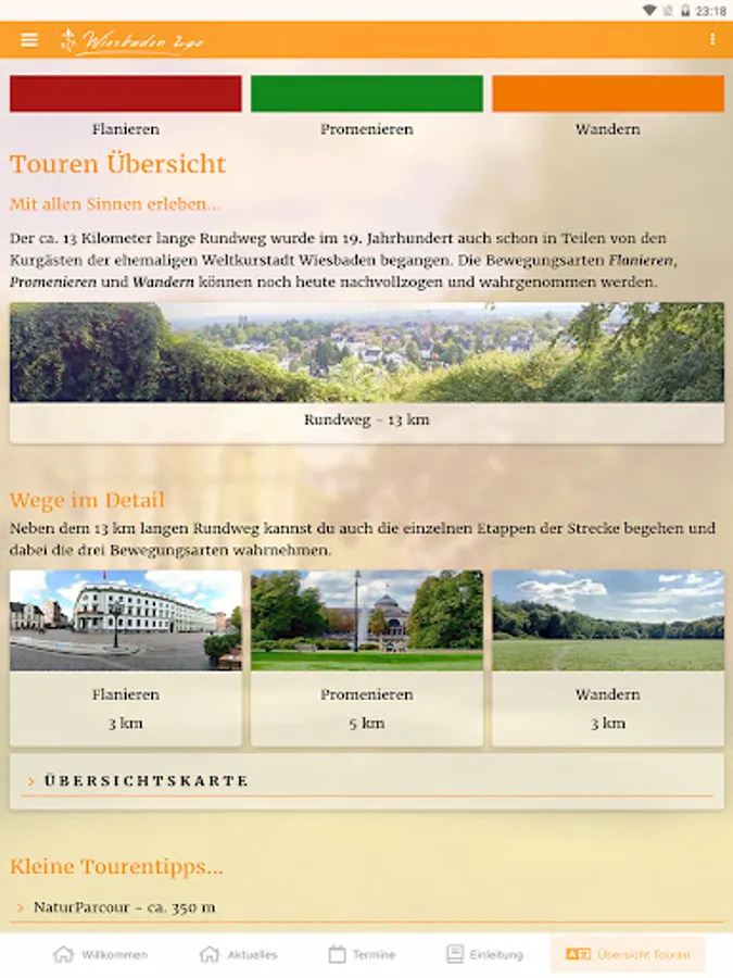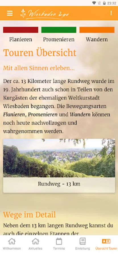- Current information as well as dates and events related to strolling, promenading and hiking. You can be informed by push notification.