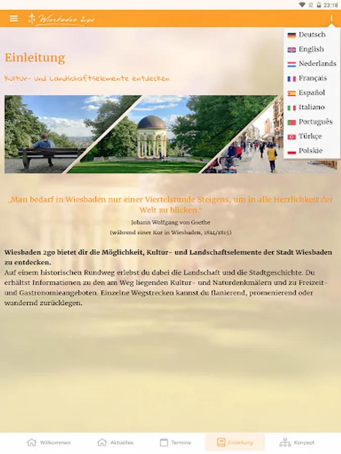 Wiesbaden 2go offers you the opportunity to discover cultural and landscape elements of the city of Wiesbaden, the capital of the German state of Hesse.
