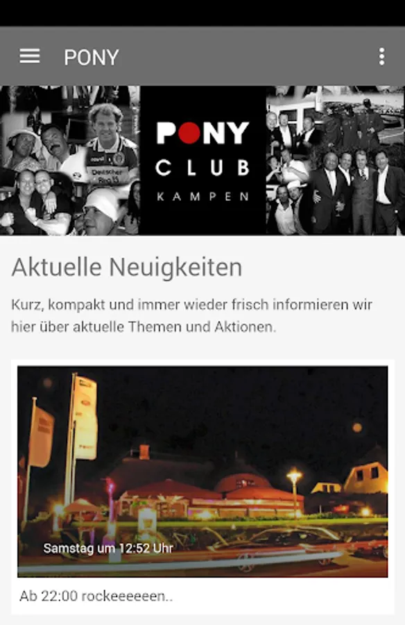 This is the official Pony Club Kampen app. We want our fans, friends and long-time regulars always keep up to date.