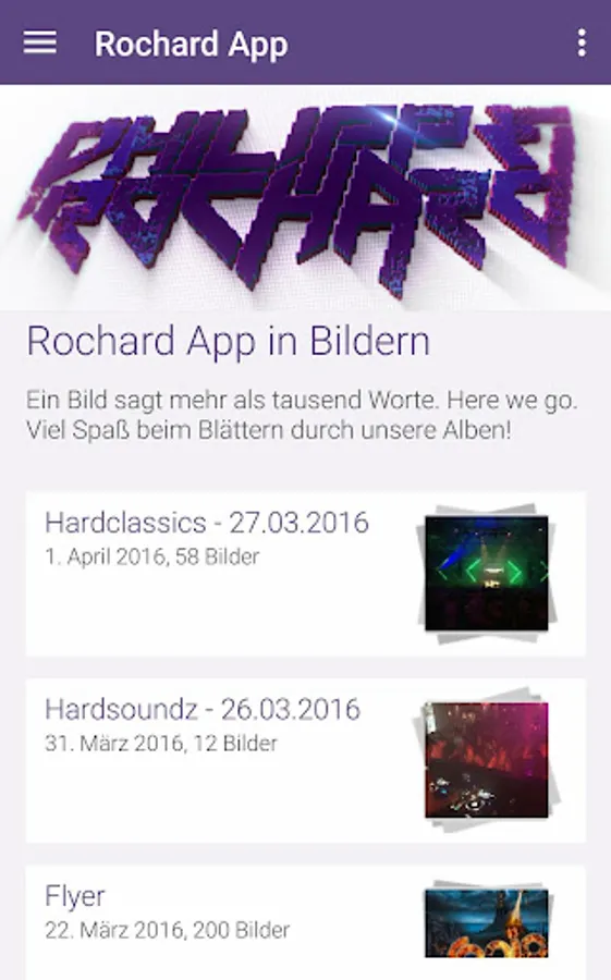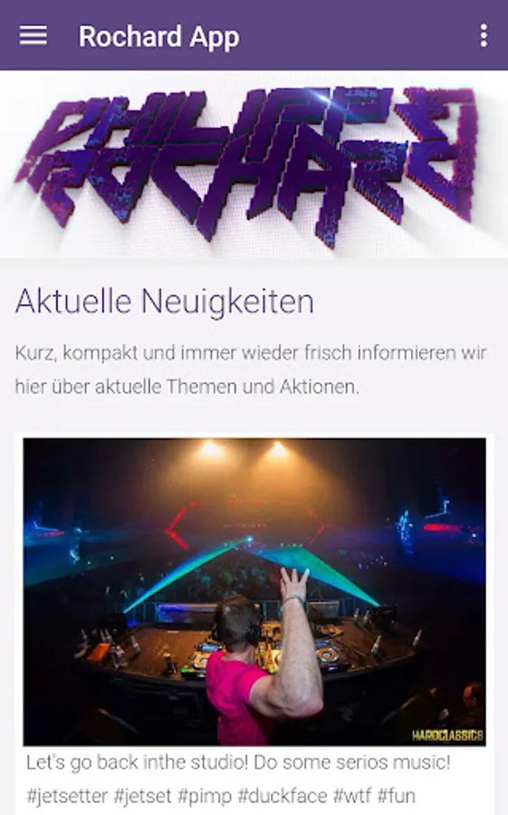 Switzerlands leading hardstyle Dj and Producer Philippe Rochard released a Dj app. This app keeps you updated about his schedule, movies, releases, podcasts, his record label Sector-Beatz and more. You can write on the FanWall and release it on your Facebook wall. Never miss anythings about your favorite act: Philippe Rochard.