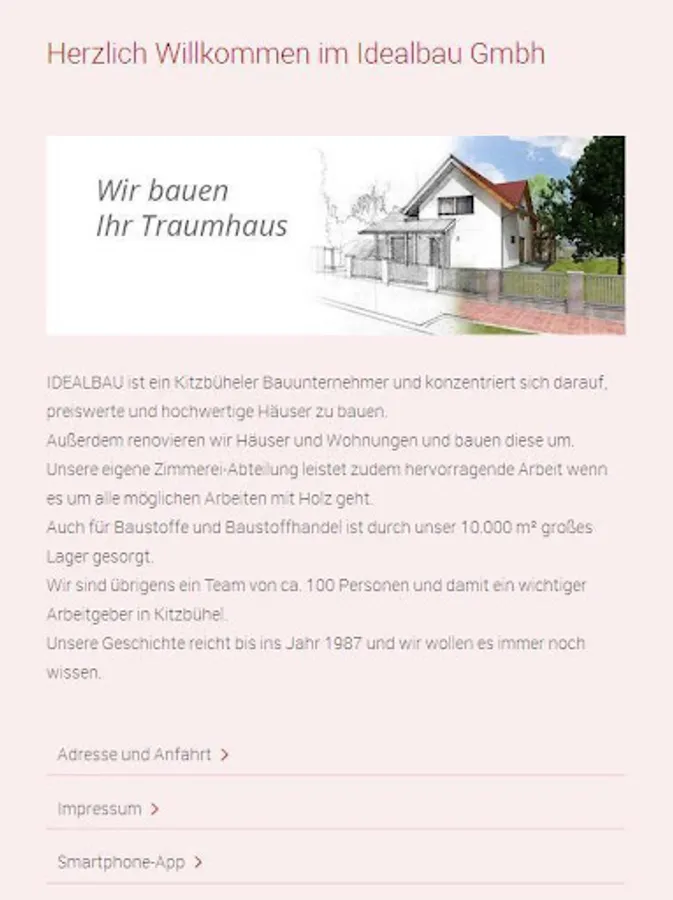 Current information, news and actions relating to construction and housing - now with our app. With idealbau.at their dreams come true. Whether new construction, modification or cultivation or something beautiful in wood, with our app you always have an overview. IDEALBAU - The Kitzbühel Construction.