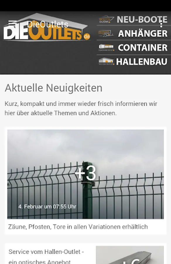 The Outlets is a company from Mecklenburg Vorpommern, which is factory direct for importing products for over 10 years. We have a number of partners in Poland and eastern region. This allows us a direct factory outlet at unbeatable prices and their own product ranges we offer private label. The app serves as a mobile product catalog and offer images of articles and projects. Through the "News" you will always get the latest news, current projects, appointments and Newcomers. Our sale areas are described in the individual sections and provide an insight into our business philosophy. About the "Intercom" you can directly contact us and require detailed advice.