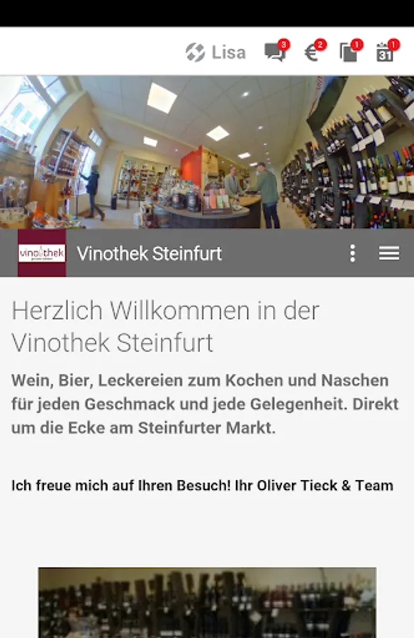Wine, beer, treats for cooking and snacking for every taste and every occasion - that is available in our shop. but with the wine shop Steinfurt app you'll get information on our products and make us right questions, or pre-ordered already online. Furthermore, all the latest news, events, pictures and offers / promotions land directly on your smartphone.