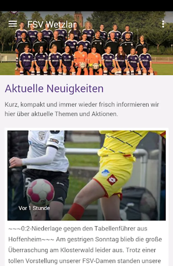 The app of the FSV Hessen Wetzlar includes the latest news about the team of the 2. Bundesliga South. Here are all news and announcements to find games, so as to obtain a wide range and be able to because of the fans. Besides akteuellen table other content are planned, such as a raffle.