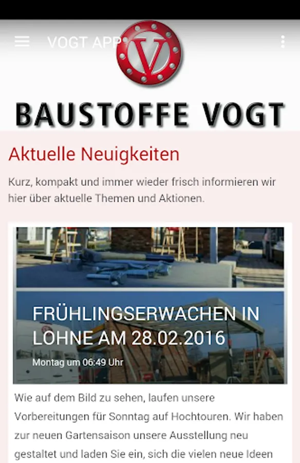 We want to use this platform to inform Lohne on the latest news of the company Materials Vogt. Whether events, offers or exhibition News - This information will have in your pocket soon.