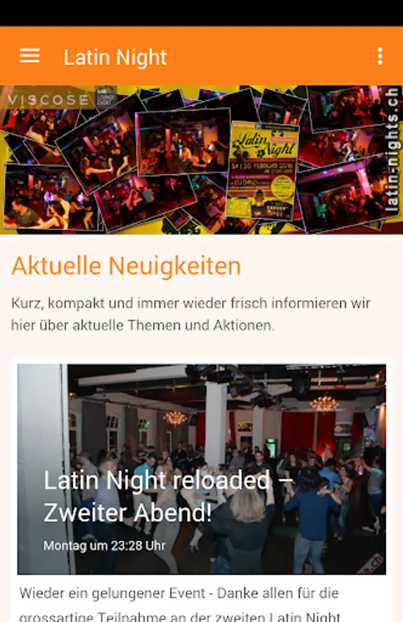 Latin Night Reloaded is the name of our central Swiss Salsa events, which we carry out regularly. With this app you are always informed about our upcoming events. Of course you get with numerous photos and impressions from our previous events and information from our partner events.