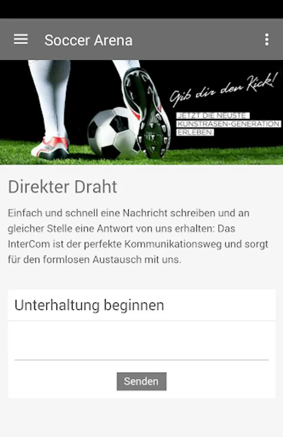 The smartphone app of the Soccer Arena Düren provides the latest information about our events and special offers. Thanks push notification you miss with our app no longer news and stay informed.
