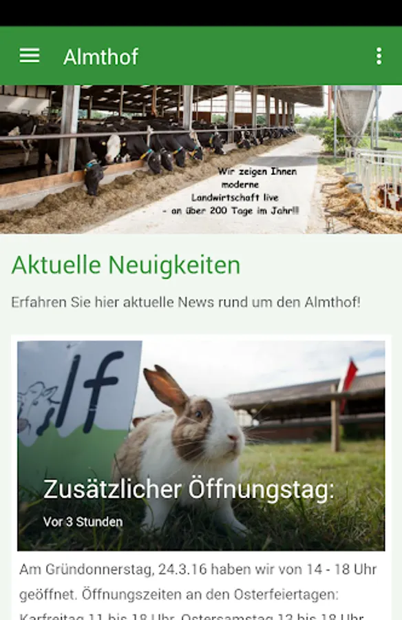 are privy to modern agriculture close our café guests. Embark on an adventure trip through the various stages of our farm and look at our everyday work on the Schulter.Ihre questions we are happy to answer. We are pleased with the growing number of our visitors and the positive feedback of their experiences with us. Download now our app to your smartphone and you will not miss the latest news from Almthof. We look forward to you!