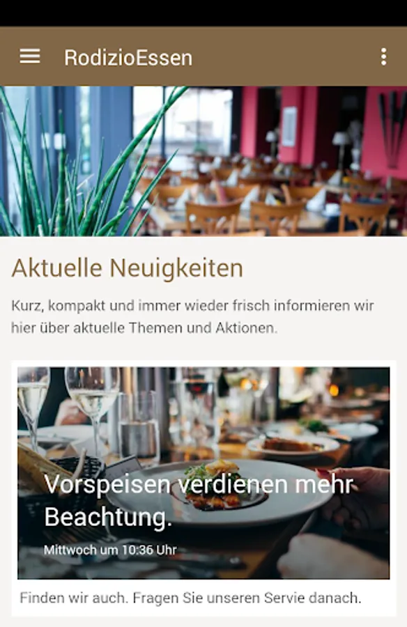 Rodizio - a South American Spezialität.Was means RODIZIO? Many different types of meat are seasoned old GAUCHO recipe and grilled over an open fire on large, rotating skewers. When the meat is tender and juicy, turn our "Cortadores" - the modern GAUCHOS - the round and cut directly from the spit in succession the meat on a plate. Download our free app to your constant companion andn learn on a daily basis about our other offers such as our daily changing lunch menu.