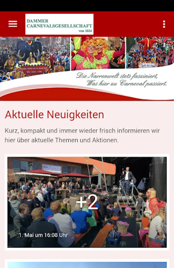 In this app you'll find information, dates and photos of the events of Dammer carnival society of 1614. This organized in the carnival stronghold Damme among other northern Germany's largest carnival parades at the highest level with over 9,000 contributors and more than 200 floats and groups. With this app you are always up to date.