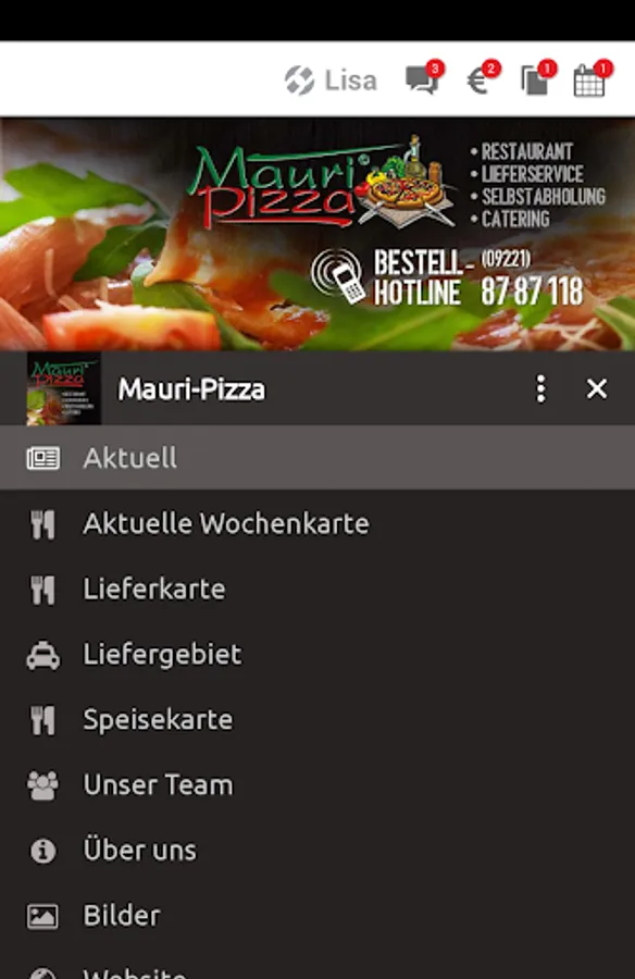 In our app, we inform you i.a. our current weekly menu, the delivery map and the delivery area, as well as various news and information about Mauri Pizza.