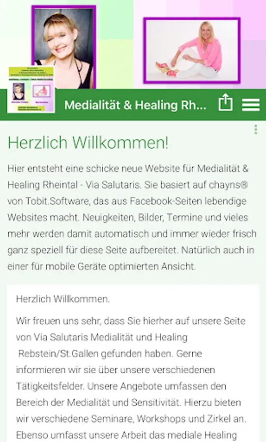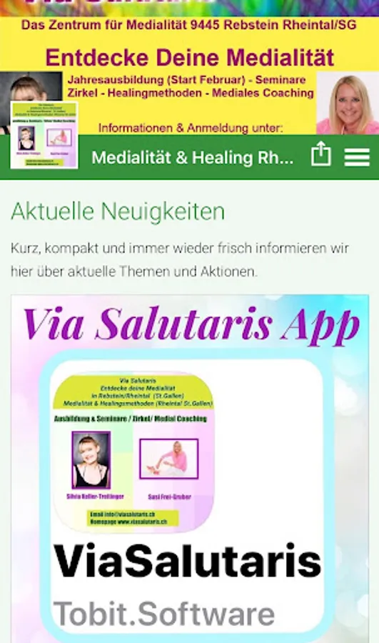 With our app Via Salutaris, you always get the current overview, in the field of mediality, healing methods, massages and the energetic gemstone acyl pictures by Silvia Keller-Treitinger. In addition, you will get in the picture gallery different impressions of Via Salutaris. Among other things, we organize media training courses, seminars, workshops, compasses and massages in eastern Switzerland. For dates and information, visit us at www.viasalutaris.ch
