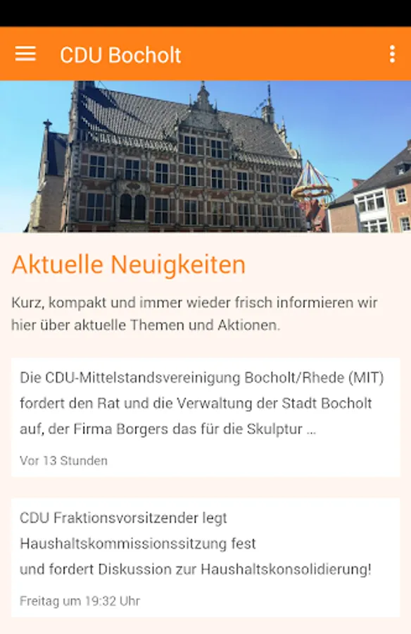 CDU Bocholt is now available as a native app on your smartphone! At each location in the world via news, photos and events coming know about. Never miss any news through push notifications. And thanks to the smartphone push of a button equal to one connection possible. This app always provides a direct contact.