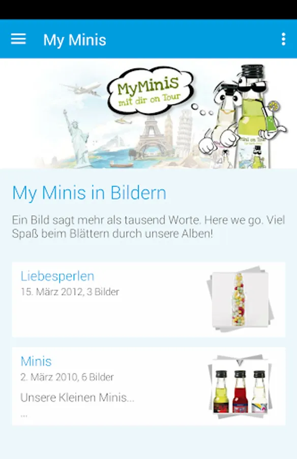 In MyMinis gets her noblest self-burned spirits and liqueurs provided with your own photo or logo. Available the Minis are in more than 25 varieties and sizes 0.02 L, 0.2 L and 0.35 L. In addition, you can also blow bubbles and nonpareils with your label fit. With the app you can get your place orders directly ask questions and you inform about prices, varieties and actions. Get yourself your own little hero for big occasions!