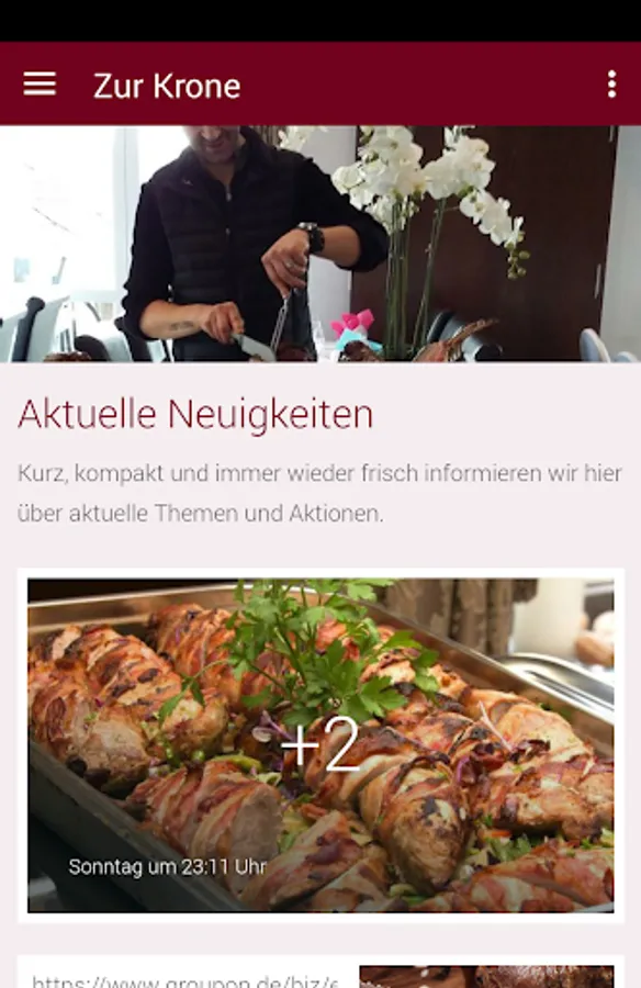 Enjoy home-style cuisine and international specialties in an elegant large-area restaurant area. Feel pampered by our chef on family celebrations, such as birthdays, wedding, communion or confirmation that can be Zur Krone your celebration an unforgettable experience. If desired, you can also take our catering service for the home to complete. In our large common room we set for your celebrations of