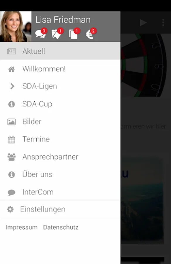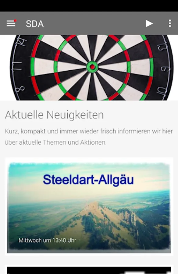 Under "News" you can always find the new tables and "Dates" the current day and invitations to upcoming Dartturnieren.