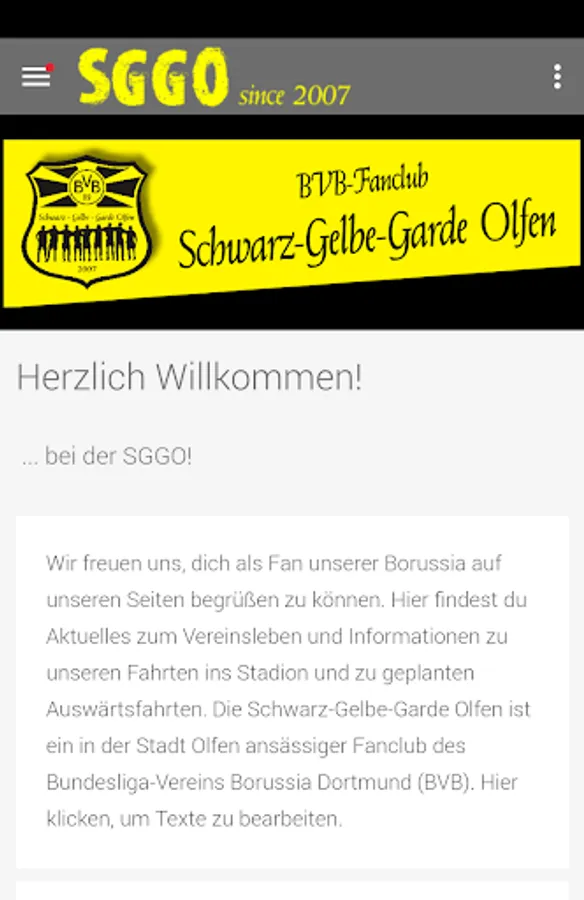We appreciate your interest in our official SGGO app. In our app, you will always find everything up-to-date about club life, information about our rides to the stadium and planned out-of-town matches. All news, photos and appointments land so directly on your smartphone. You can also find all the most important information about BVB here. So go and download the app directly!