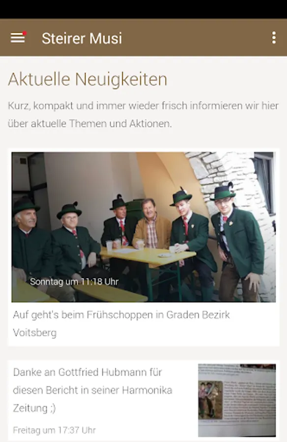 In our app, please go to News about us musicians and our current events and performances. In the field images, see pictures from our performances.